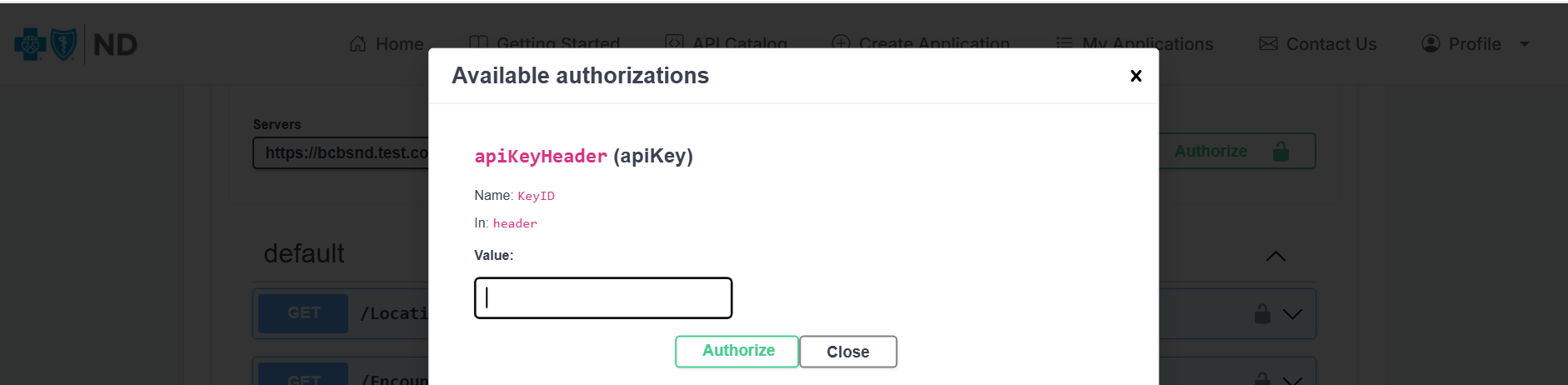 Authorize Swagger using Keyid Required